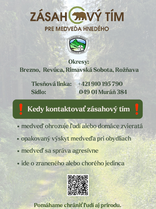 vedúci Zásahového tímu pre medveďa hnedého v oblasti Muráňa vyzýva občanov so žiadosťou o spoluprácu pri zvyšovaní informovanosti obyvateľstva.